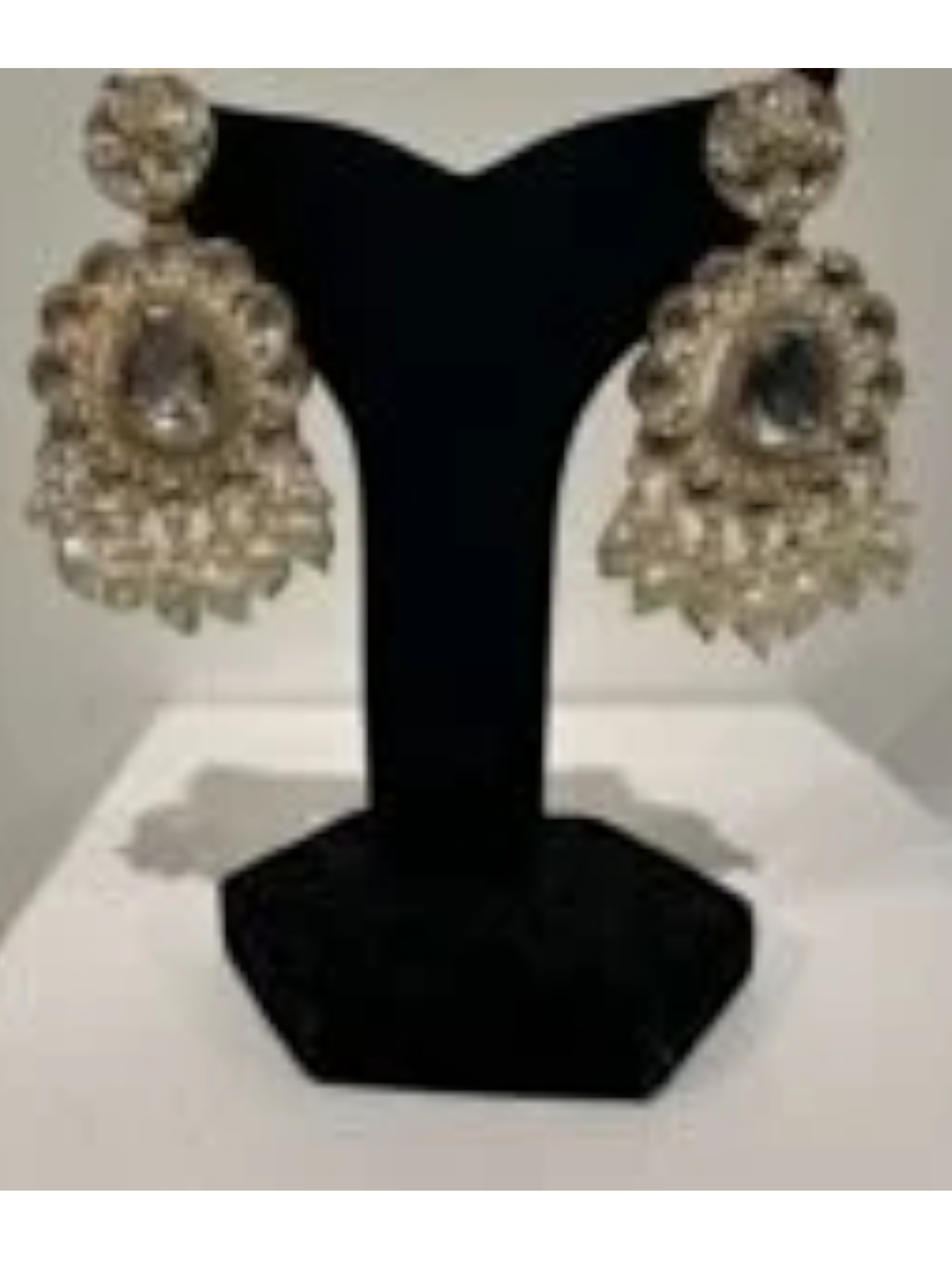 Measuring 3 inches in length, they feature a classic Jhumka or Chandbali-inspired silhouette, often accented with delicate pearl drops (as seen in the images). These statement earrings are perfect for wedding guests, formal parties, or religious ceremonies, giving you a dazzling, opulent look.