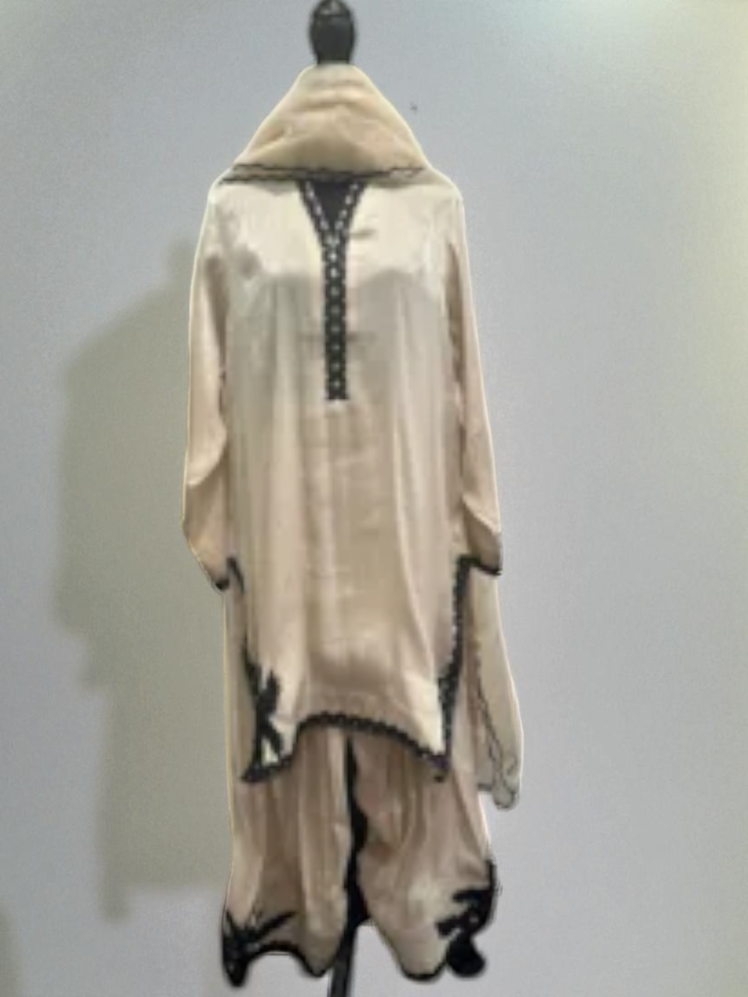 Turn heads in this stunning beige ensemble, perfect for ethnic festive wear and special occasions. The outfit features a traditional farshi shalwar paired with a luxurious sheesha silk short shirt, creating a regal and sophisticated silhouette.