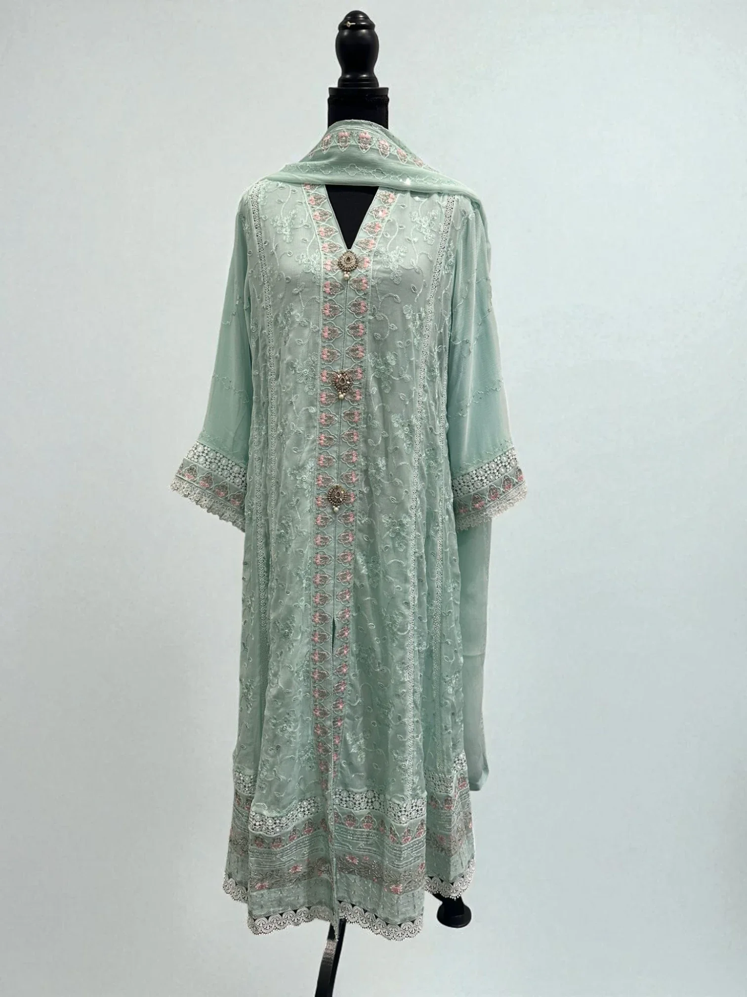 | Embellishment | Full Thread (Mint & Pink), Sequins, and Zari Embroidery (Front & Back) |