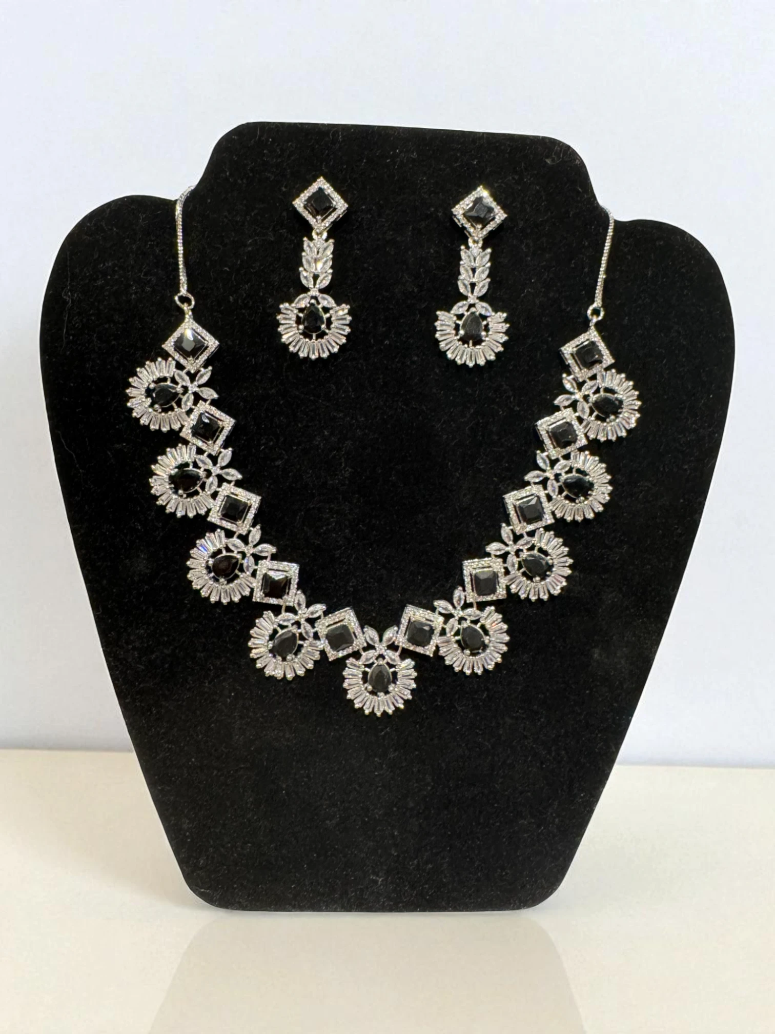 Silver & Black American Diamond Statement Set